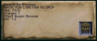 Cupcake says, 'There that should do it young Iksar. You should find the charge upon that mask sufficient for our needs. If you feel that you should need more charges just bring me the mask back along with another diamond of blue. Now on to the matter at hand, you already know that we are a dwindling race and are in need of outside help in order to prosper fully into a new brownie generation and that my daughter is our last hope. Here in lies the problem. In my love givings and nuturing my daughter has become arrogant, mistrusting, and spoiled. Many of our own race have tried to win her heart but none have been able to put up with her demands. Masamura I ask of you, please for the sake of the next brownie generation please win my daughter's heart. In return I shall grant you an item that not many have seen ever before in this world. Let that be a motivation to help us! Now before I summon my daughter remember to use that mask and take upon yourself the form of a brownie for my daughter does not trust outside races. Shall I [summon] my daughter now?