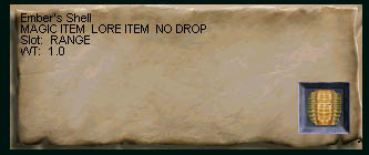 Cupcake says, 'Ember is the pet of a Halfling in their village. The use I have for her shell is not important it is merely a sign of my trust for you.'