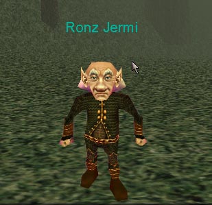 Okie this quest is crafty...I finally found the NPC by accident running Kenjie around Gfay...and boy was he noticable...in fact it looks like VI just pieced this NPC together as a joke, but why he looks like that makes sense after you continue the quest hehe...god I love this quest so far kudos to VI hehe...it was early in the morning and auctioning was minimal...I think the zone has to be quiet and me fricken lucky running around to find him but he's not hard to find once he spawns...i mean well he stands out hehe...logged Masa back in to do quest after I figured out where he last was..