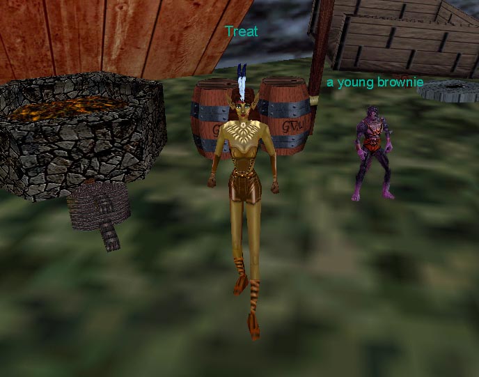 Treat says, 'Wait please stop my lady do not kill him! Be he Brownie or Iksar I do not care! He is my love and I do not wish him harm!'