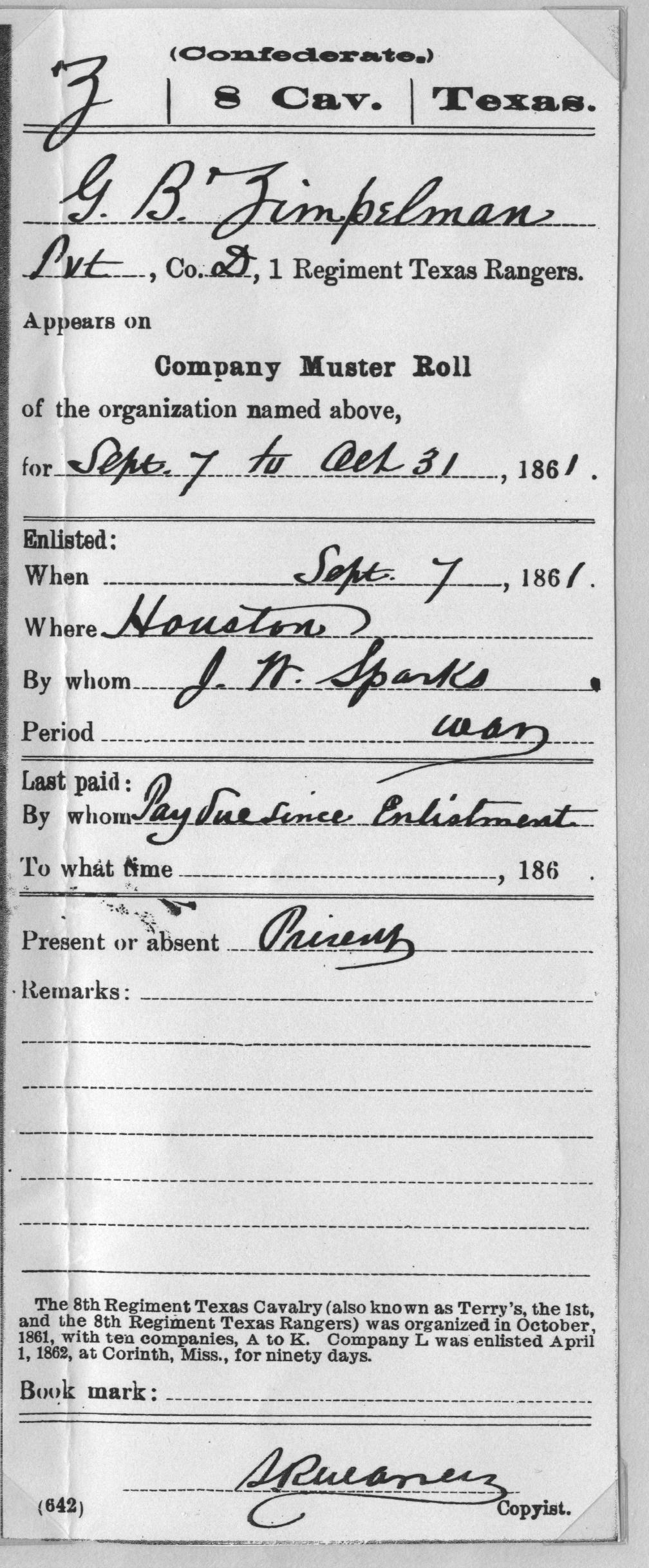 This page contains the documents received from the National Archives, relative to George B. Zimpelman's service in the Civil War. Additional links are at the bottom of the page. To see a transcription of a card, click on the highlighted card number.