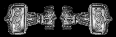He was foremost of the gods to the common man, who would call on him to ensure fertility, and widely worshiped. Hammer shaped amulets, a symbol of Thor because it was his weapon, were worn about the neck well into the christianization of Scandinavia. There are molds from that time which contain both cross and hammer shapes, side by side. His name occurs in numerous place names, and it was his statue which was central in the great temple at Uppsala. Thursday is named for him and he was associated by the Romans with Jupiter. Donar was an early version of Thor among the early Germans. The anglo-saxons worshiped a thunder god named Thunor. |