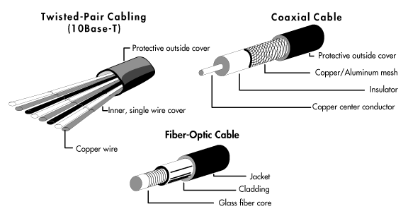 Guided or bounded media are manufactured so that signals will be confined to a narrow path and will behave predictably. Commonly used guided media include twisted-pair wiring, similar to common telephone wiring; coaxial cable, similar to that used for cable TV; and optical fiber cable.