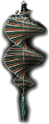 Step 1. Start by threading the swivel on one end of the wire. Next bend the wire end into a loop about 3/8 in diameter. Now "thread" on three(3) Green beads.STEP 2. Start "threading" the strips of canvas and beads onto the wire.In the order given below. Make sure that you run the wire through the center hole of the third(3rd) row of each peice of canvas.