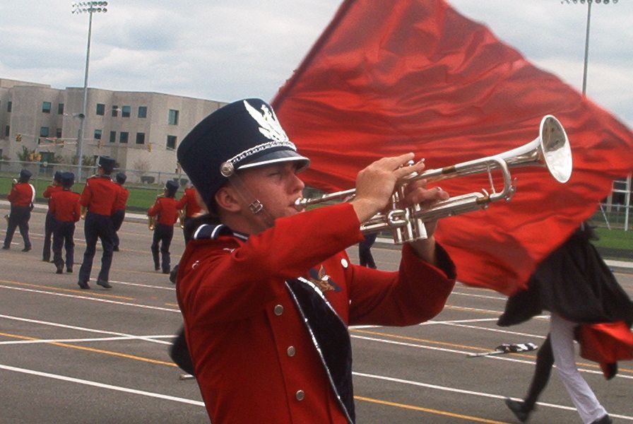 | Dylan Rectenwal playing his solo at a marching band rehersal. | |||||||||