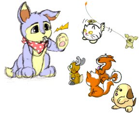 This is me hangin out with my friends! There's Stella, and Mae, and we're really mad at this one kougra girl who chewed up all the toys in the box at Preschool!! I was really mad, cuz I was playin' with the korbat plushie first. Grrr... But Lin says I'm s'posed to be a gentleman, and I gotta play nice.