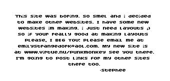 |Frames|IE3.0+|Netscape|Java Script|+Sense of Humor+|An Obsession|