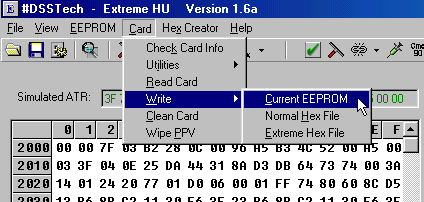 Now that the file is open click on the Card menu, Choose Write and then Current EEprom.