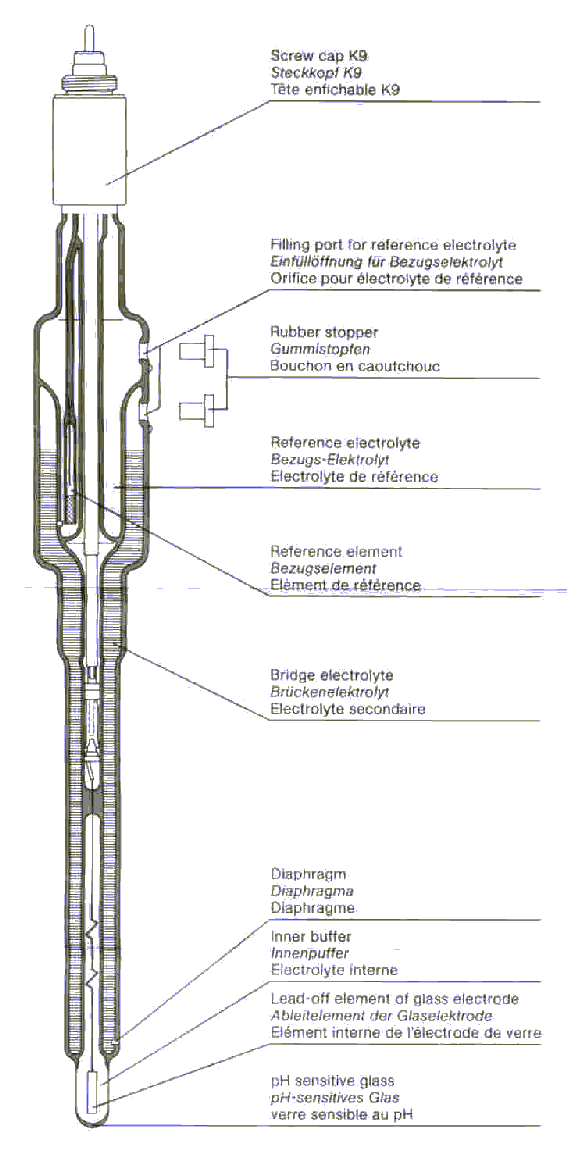 เราสามารถวัดค่า pH ได้โดยการใช้ indicator และ reference electrode ครับ ซึ่งเรา เคยศึกษากันมาแล้วสมัยม.ปลายในเรื่องของปฏิกิริยาเคมีครึ่งเซลล์ ทั้งหลาย ในทางปฏิบัติ บริษัทที่เขาขาย pH electrode จะมีให้เลือกว่าเราต้องการ indicator กับ reference electrode แยกหรือรวมกัน (combined electrode) ครับ อย่างในกรณีของบริษัท Radiometer นั้นเขา มักจะทำแบบแยก และความยาวของ electrode ก็ค่อนข้างสั้นครับ จึงไม่ค่อยเหมาะที่จะเอา ไปใช้ในถังปฏิกรณ์ชีวภาพ (fermentor หรือ bioreactor) เท่าไร แต่ถ้าเป็นของบริษัท Mettler Toledo เขาจะมี custom made เลือกความยาวได้ครับ บางทีสั่งความยาว 40 cm ก็ได้ โดย ทั่วไปราคาของ electrode จะอยู่ประมาณสัก 10,000 บาท หรือแพงกว่าถ้าสั่งทำพิเศษ