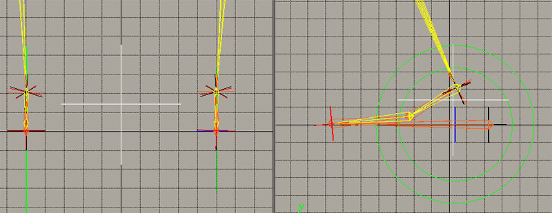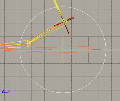 Next, you have to align as close as possible the parts of the ski to the corresponding points, using Z rotations and the Pick Joint By Mouse command (found under Actor > Skeleton > Move Joint > Pick Joint By Mouse.