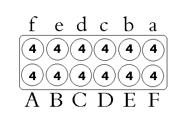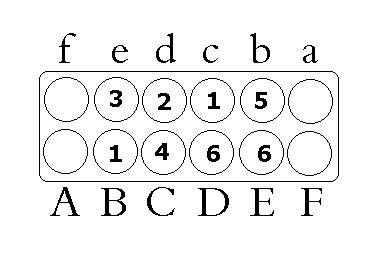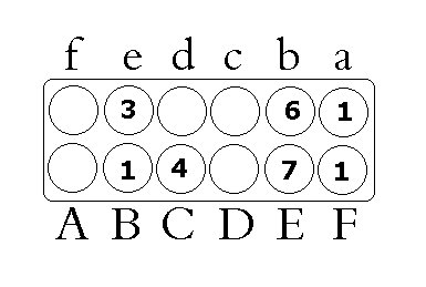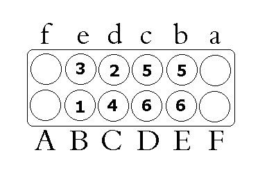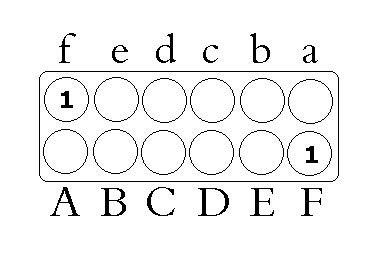 Si collocano 4 semi in ciascuna casa. Il tavoliere viene posto fra i due giocatori in senso