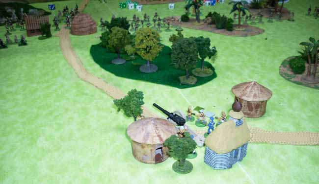 Looking at the battle from the British prospective. King's African Rifles under command of Phil Young (in the foreground) occupy the village and fire at Russ Schnieder's Schutztruppen.