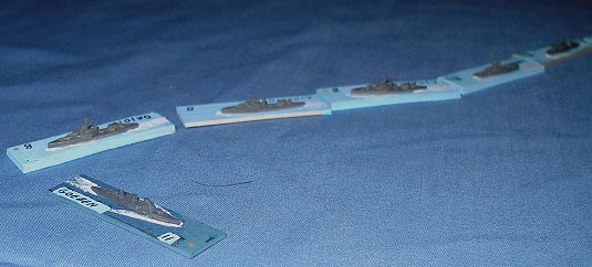 Also, Jay Stribling cut and pasted the damage record sheets so that each player had only the ships in his squadron on his hit record pad, instead of all the ships in his country's fleet.
