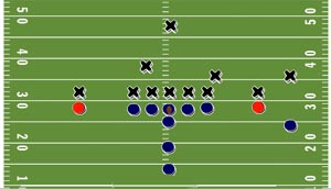 This formation has gained popularity in the NFL as teams have started trading out a fullback, or blocking back, in favor of another wide receiver or tight end who is usually faster and better able to receive the ball, while still helping the run game with down-field blocks. The effectiveness of the formation is further increased if the team has athletic tight ends with good hands, thereby increasing the versatility of the formation. It is, moreover, good for bootlegs and reverses. Single-back offenses have gained popularity due to zone blocking and advanced defenses. There are several combinations of single back formations that are used in Division 1 and NFL football. Speed offenses will use single back because the defense still has to respect the run out of these formations since you can line up many tight ends and still have a down field running game. Single back offenses create match-up problems in the defense. Linebackers will often have to cover receivers in passing routes while defensive safeties are used more to come up and stop the run on the line of scrimmage. Teams that run a single-back offense typically rely on quick receivers that run great routes, balanced tight ends (blocking/receiving), intelligent, shifty running backs, fast and intelligent offensive lineman, and a quarterback that can read defenses and make safe throws under pressure. Single-back offenses are more common in the NFL than in college or high school. Here are a variety of plays that start in the ace formation.