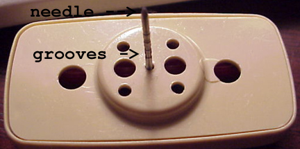 some tiny metal ball bearings in it that catch in the grooves of the needle