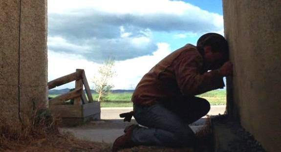 The men live in a world that is completely hostile to their secret relationship. Even when they are saying goodbye, they cannot afford to give any passersby the slightest impression that they are anything more than a couple of good friends. Ennis tells Jack of his plans for marriage, making clear that there will be no more contact between them. But after Jack leaves, the stoic Ennis struggles with an emotional realization in a powerful moment of the film.