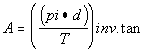 A= twist angle, pi=3.14 constant, d= bore diameter, T=twist length in