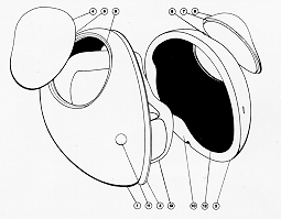 The work on the Pod later led Roger Dean to the design of a novel kind of childrens bed based on a mushroom-shaped chamber which combined room and bed into one. In studying its ergonomics and interviewing as many different people as he could about how the look and feel of the bedroom effected them, he realized that he had clued-in to something powerful. He noted that there was a kind of subconscious, primal, uneasiness in people created by the structure of their environment, the shapes of rooms and buildings around them. Children, unshielded by the in-grained rationalizations of adulthood, express this unease fairly directly. They are suspicious of dark spaces that are out of their sight and imagine them inhabited by a variety of horrors. Children cry out at night in fear of monsters under their bed or inside closets. When frightened, they cacoon themselves under blankets, as if the bedroom itself were too large a space to feel safe in without light to make sure that the contents of every corner is suitably exposed.