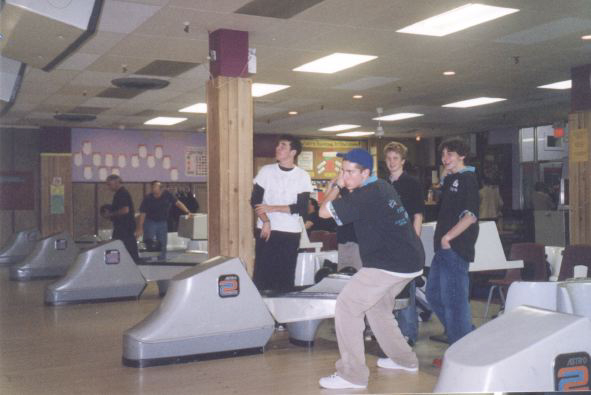 With only two frames left to go, and Team APS well behind, Team APS frontman Alex "The Rocket" Minkin calls a meeting to discus team strategy. If you're wondering why it looks as though JIM isn't paying attention, this photo was taken 3 seconds before JIM passes out. Apparently, the flash of the camera sent him into a freeze, and then forced him to pass out.