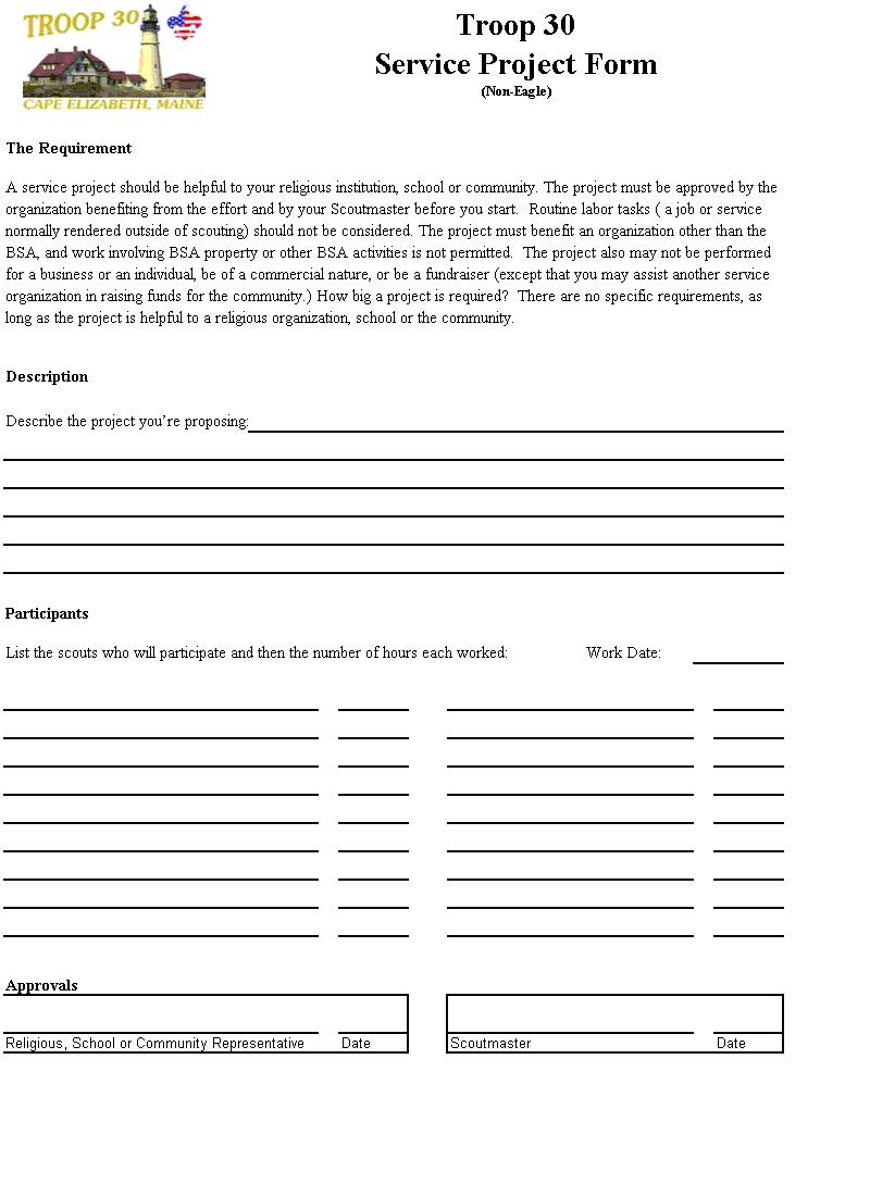 Troop 30 is part of the Casco Bay District, which in turn is part of the Pinetree Council.