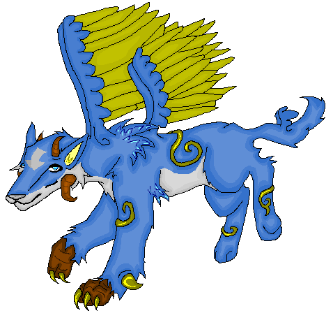 Notes: Now that he is an adult, he isn't picked on anymore and has great respect from many. He has four sets of wings and a small extra pair on his tail. He gets along with everyone not matter how they treated him as a pup since he was the runt of the littler basically.