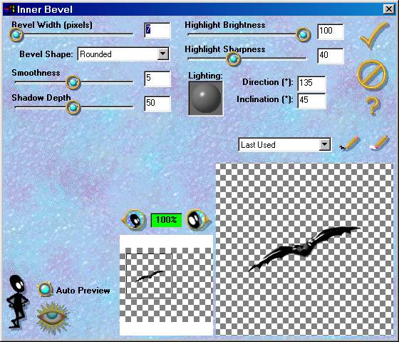 Effects, Plugin Effects, Eye Candy 3, Inner Bevel with the following settings: