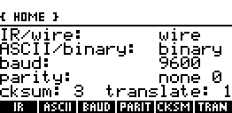 Usando la interfase de comunicación de la calculadora, se puede especificar el tipo de protocolo a usar, así como el medio de transmisión y otros parámetros. En esta plantilla se puede especificar parámetros del IOPAR, sin necesidad de entrar en la plantilla destinada para tal fin. Para comunicar a el PC con la calculadora con esta interfase, se siguen los siguientes pasos: