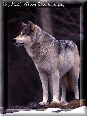 The strength of the wolf is the pack. A packs size can range from 6 to 8, or as many as 30 in Alaska or Canada. They can travel long distances by trotting around 5 mph or can run up to 25 to 35 mph for short distances. The wolf lives within a complex social structure, with the alpha male and female being at the top of the hierarchy. They lead the pack in their travels, decide when and where to hunt, settle disputes between other pack members, patrol their borders, and are usually the only breeding pair within the pack. There is usually l litter each year, with a gestation period of about 63 days. All the adults help feed the female and pups until they are old enough to be weaned, around 5 to 6 weeks.