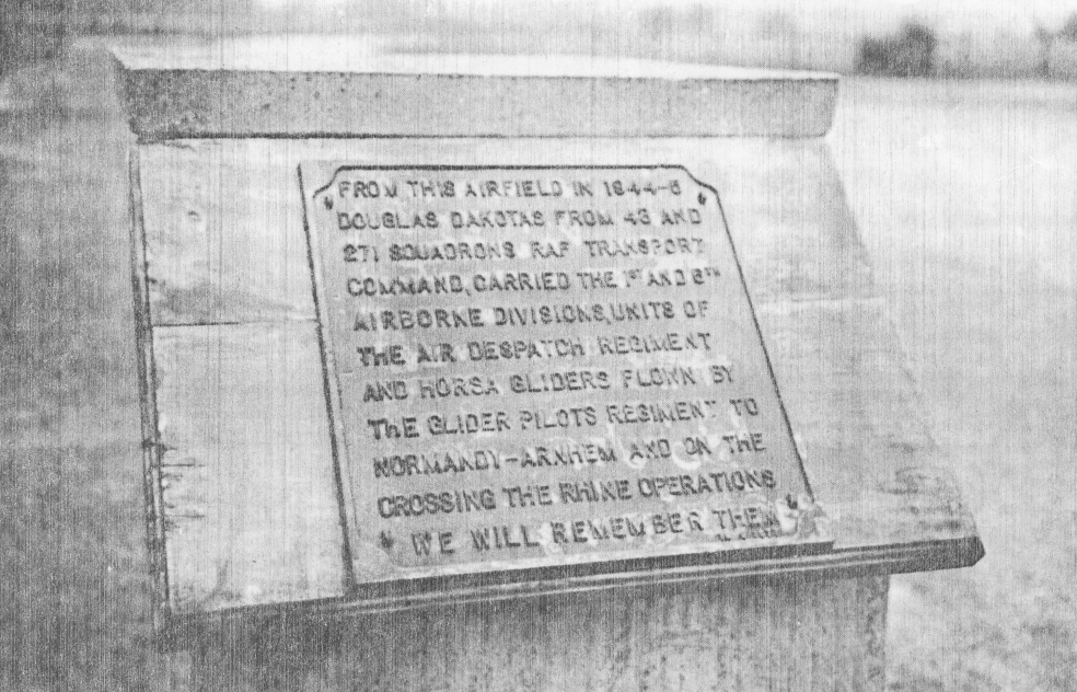 •The Commemorative Plaque at the end of the runway at RAF Down Ampney in 1984.