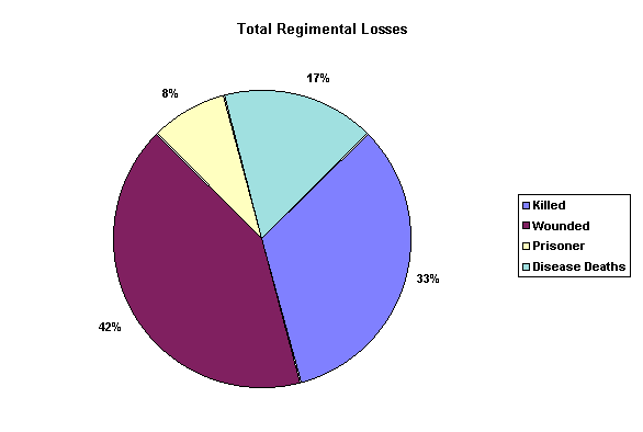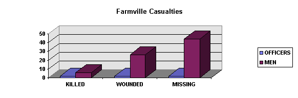 During the last campaign (March 29 to April 9, 1865), regimental casualties were 82 (mostly at the Battle of Farmville):