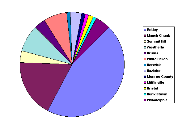 Of the 163 men who enlisted in Company K, we have residences listed for 84 of them. They breakdown in this manner: