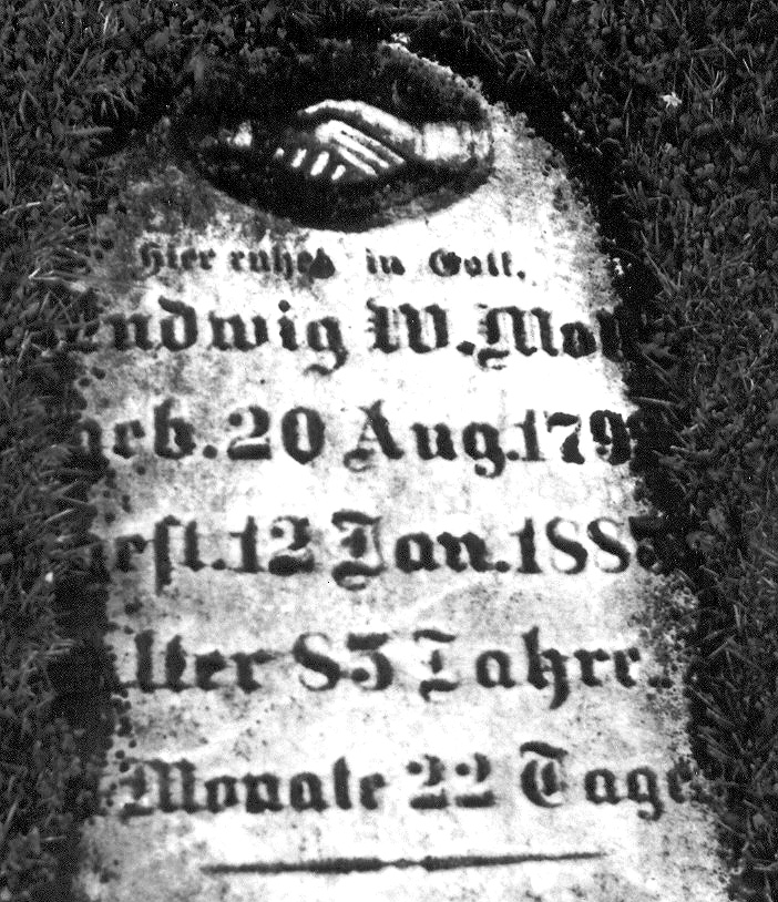 Christian (b. 1825) apparently emigrated as soon as his military exemption came through and settled in Bergholz where his uncles Ludwig and Friedrich Moll were living. In 1848 he married Louisa Bröker. Little else is known about Christian, but much can be speculated. He was in Milwaukee when his first child was baptized in 1849. A second child was born in 1853, but an illegitimate child fathered by Christian was born the same month. 1855 and later census reports show Louisa and her children living with her parents.