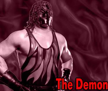 WRESTLER INFO Wrestler Name: The Demon Alliance: Heel Theme Music: "Iron Man" by Black Sabbath Height:6'11" Weight: 315 lbs Hometown: Skid Row, Los Angeles, California Finishing Maneuver:"Hell Razor" & "Highway to Hell" Finisher Description: (TKO) & (Swinging Side Slam) Titles Held: World Tag Team Champion (1x) & Hardcore Champion (2x) | |||||