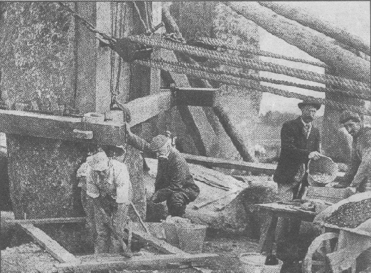 In this picture you can see a stone being raised and set upright.