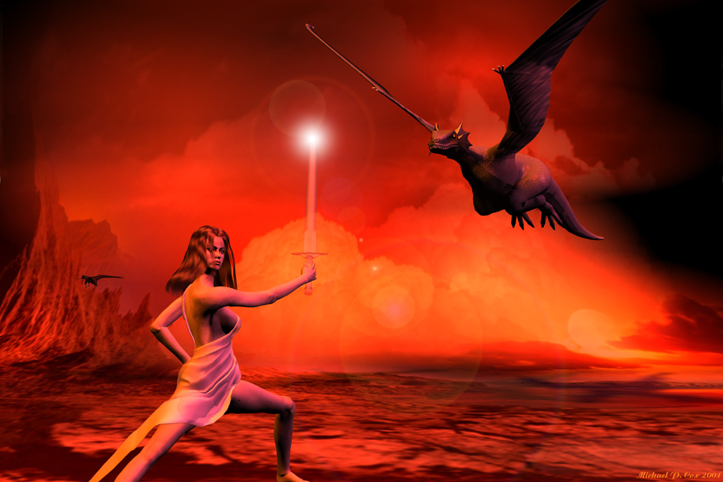 Her familiar is a magical, scarlet dragon called Erin. They can mind talk, and communicate in the elven, human and dragon language.