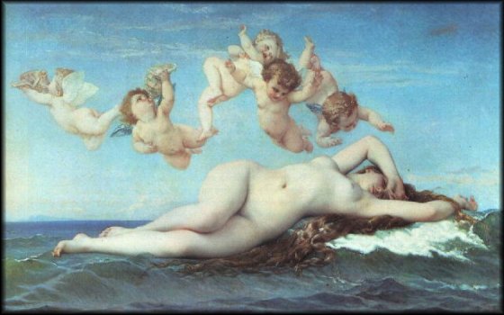 In Greek mythology, Aphrodite is the goddess of love, beauty and sexual rapture. According to Hesiod, she was born when Uranus (the father of the gods) was castrated by his son Cronus. Cronus threw the severed genitals into the ocean which began to churn and foam about them. From the aphros ("sea foam") arose Aphrodite, and the sea carried her to either Cyprus or Cythera. Hence she is often referred to as Kypris and Cytherea. Homer calls her a daughter of Zeus and Dione.