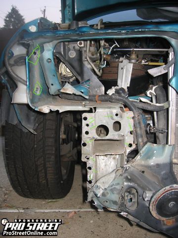 2. Now that all the spot welds are cut off, its still going to be very tough to take them out and you'll new a CROWBAR to move the radiator support.