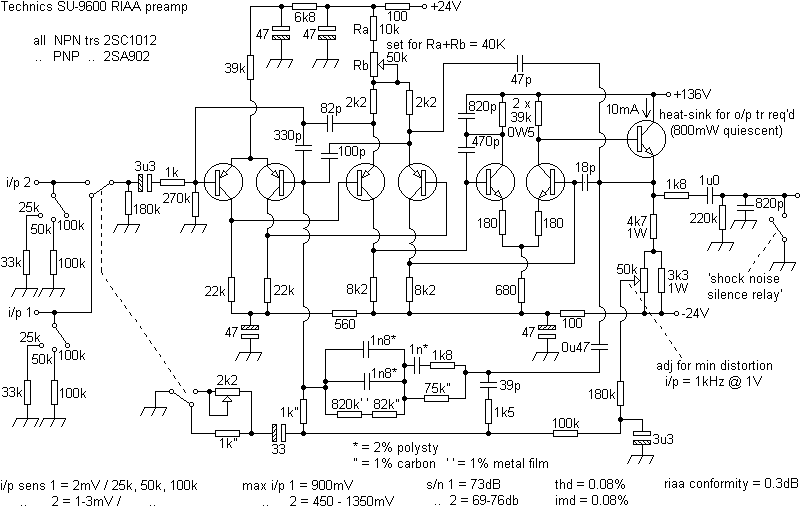 Such a minimalist approach can be detrimental to listening pleasure since additional system noise will invariably be manifest. An acknowledgement of the real world can be seen in the Technics SU-9070 below.A later approach in a similar vein, that assumes a perfect record and turntable, with a DC gain of 1,010. Notwithstanding motor and bearing noise, use with a tangential deck will reduce modulations imposed by radial arms with light tracking forces.