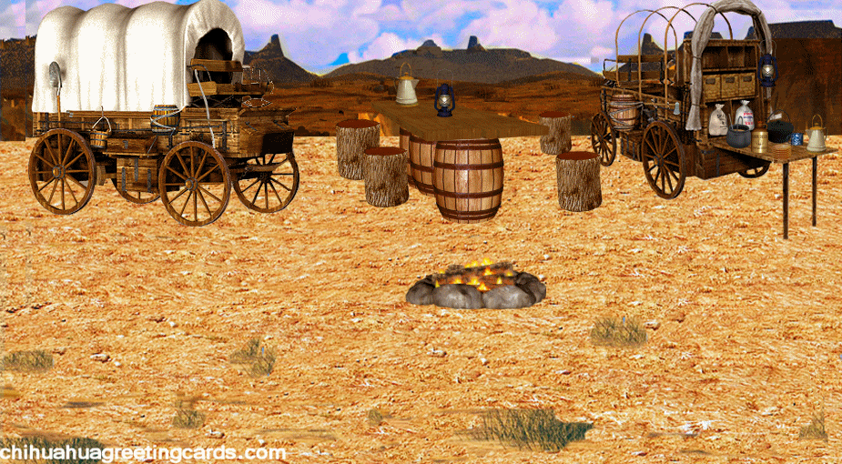 Use your mouse to drag all the pieces anywhere in the scene and off of scene. (((YOU MUST HAVE A MOUSE TO PLAY THIS))) This WillNot Work Without A Mouse!!! All the pieces are just below the Chihuahua wagon train scene. Have fun with the little Chi's and their little friends. Place them in their tents to bed down for the night. Place their cooking pots and coffee posts on the fire and cook them up some grub. or give them a guitar to play. Give the ponies a bucket of water to drink.Hitch their ponies up to the wagons to hit the trail. If some of the images don't load Click on on the red-X with your mouse and click on show picture or you can press F5. Enjoy your visit! Have a Chi-rrific time! :) |