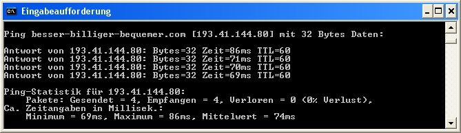 (Den Test kann jeder selbst nachvollziehen: man öffnet eine DOS-Eingabeaufforderung und gibt den Befehl ping adhs-legasthenie.de ein. Als Antwort erhält man u.a. die IP-Adresse des Rechners.)