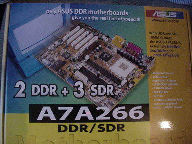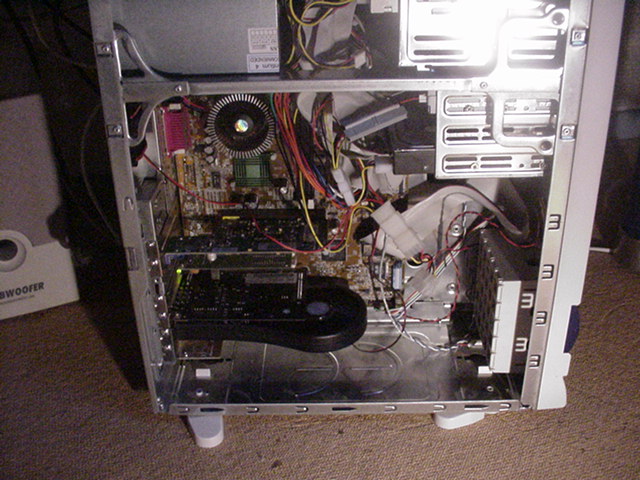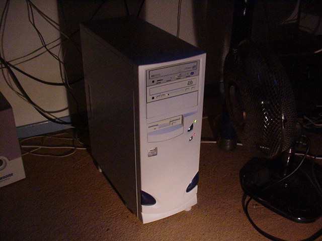 AMD Athlon Thunderbird 1400, Asus A7A266, Mini Copper Orb, 400 watt voeding, Elsa Erazor X 256, Creative Soundblaster Live 1024 value, netwerk kaartje, Maxtor 8.4 GB 5400, Maxtor 40.9 GB 7200, 40x speed cdrom, 512 MB SDRam 133mhz en zeeeer heet:P ;'(