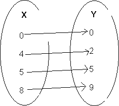 The domain of the set is {0, 4, 5, 8}