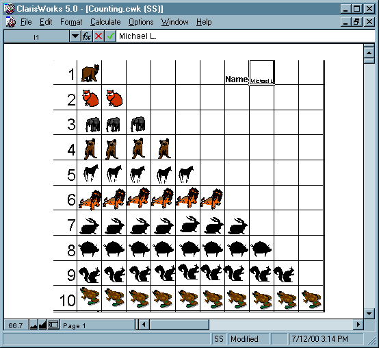 Students as young as kindergartners can use spreadsheets with the help of templates where formatting has been done for them and they focus on the task at hand, for instance, they duplicate pictures as they count to ten on the grid, or fill in the numbers from one to ten. They concentrate on counting, or on making a pattern, gradually developing their computer skills.
