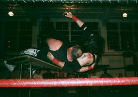 "Wicked" Billy Meyers bodyslams Mojo on thumbtacks.