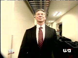 [[**The Scene re-opens in the sold out Arena where the Camer cuts backstage to where it shows the Empire Chairman. Mr. McMahon walking the halls**]]