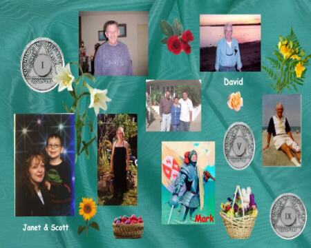 In that spirit The SoberLady wishes to include the "artwork" of a very dear friend in sobriety which relates the "birthdays" or Sobriety Anniversaries which some of her friends have celebrated ("belly-button birthdays may be included also). If you are interested in being included in these pages, please send an email to The SoberLady at soberlady87@hotmail.com with your name, date of sobriety and if you wish a picture, and she will include you in her "rogues gallery".