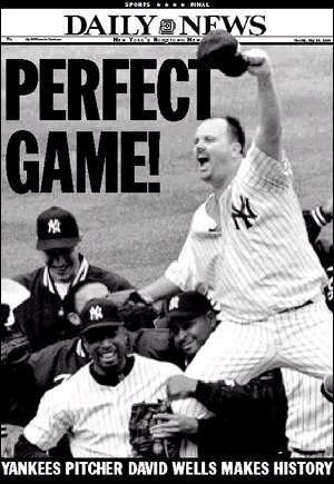 Wells (5-1) went to a three-ball count on four batters -- coming back from a 3-0 on Matt Lawton in the fourth -- in pitching the first perfect game at Yankee Stadium since Don Larsen in Game 5 of the 1956 World Series.