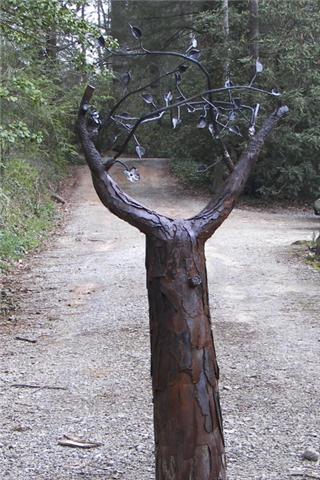 For a number of years I wanted to forge and fabricate a tree using 100% recycled materials. This is the result. The Tree stands a little over six feet tall and is about three feet wide at the branches