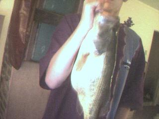 This is a picture of a big old bass that my son caught this spring. He is really proud of it.