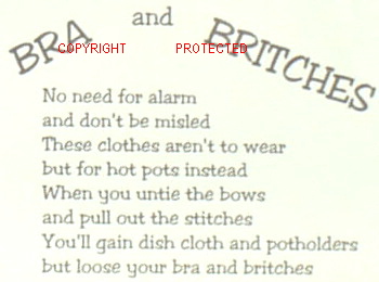Bra & Britches with pot holders $9.95 plus shippingHERE ARE THE COLORS THAT ARE AVAILABLE